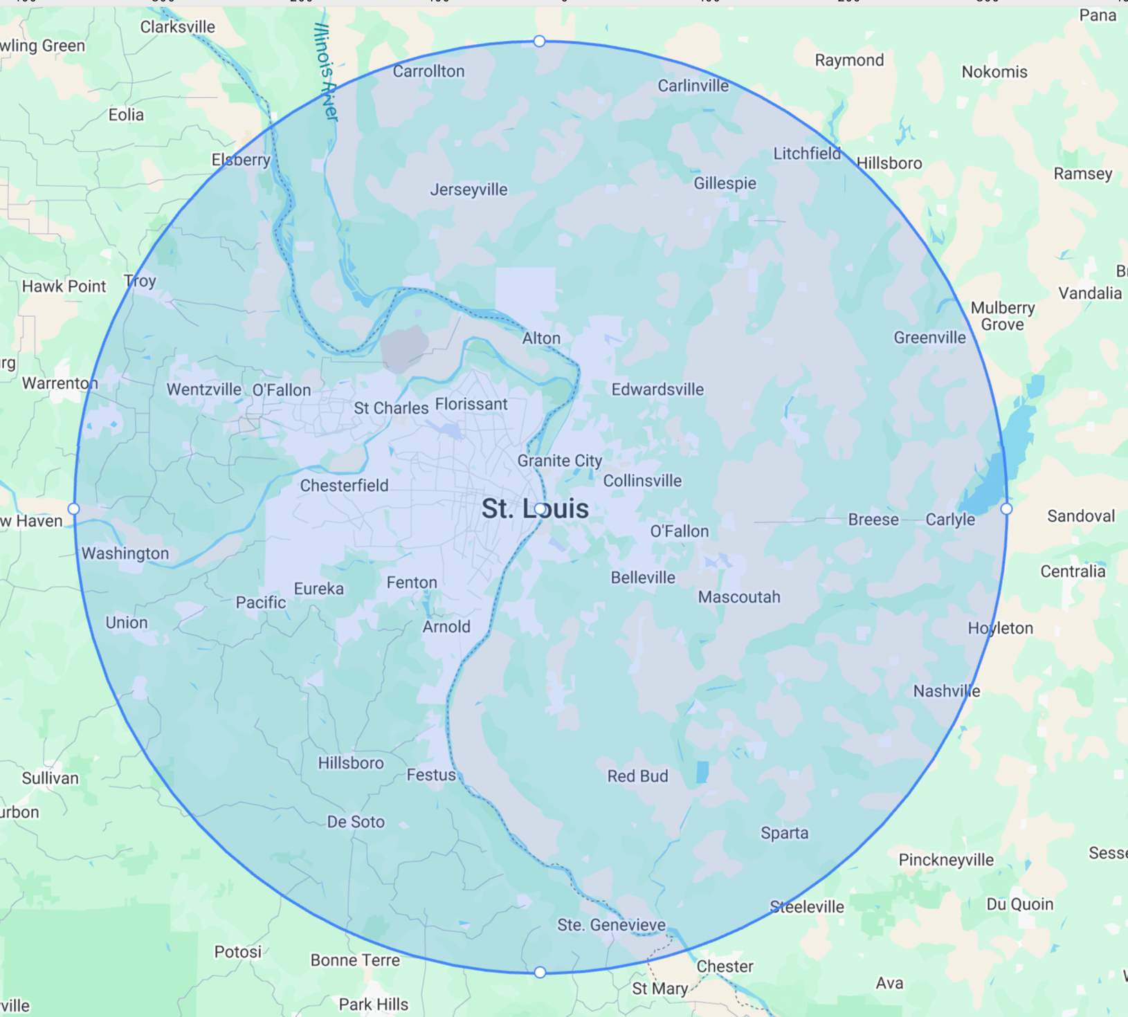 Members who request accounts and Verified Businesses must be within a 50 mile radius of the St. Louis Arch.